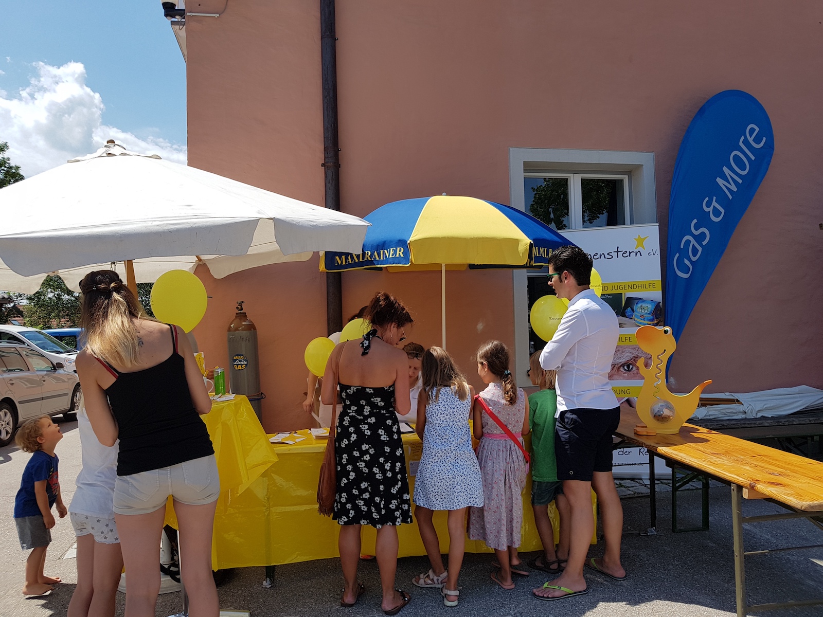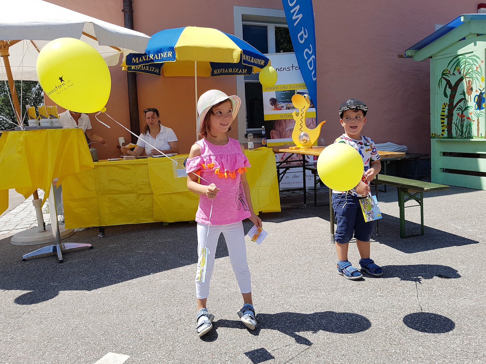 Am 14.07.2018 fand in Bad Aibling das diesjährige Bürgerfest statt. Wir waren, wie die Jahre zuvor, mit einem Informationsstand vor Ort und konnten somit die interessierten Besucherinnen und Besucher über uns und unsere Arbeit informieren. Damit die Kinder nicht gelangweilt den Gesprächen folgen mussten, veranstalteten wir wieder unseren -von den Kindern geliebten- Luftballonweitflugwettbewerb. Das Sonnenstern Team ist gespannt, wie hoch die Entfernung der Gewinner-Karte dieses Jahr sein wird. In jedem Fall war es nicht nur für die Kleinen ein Riesenspaß, den Ballons bei Ihrer Reise nachzuschauen. Die Gewinner werden dann von uns benachrichtigt.