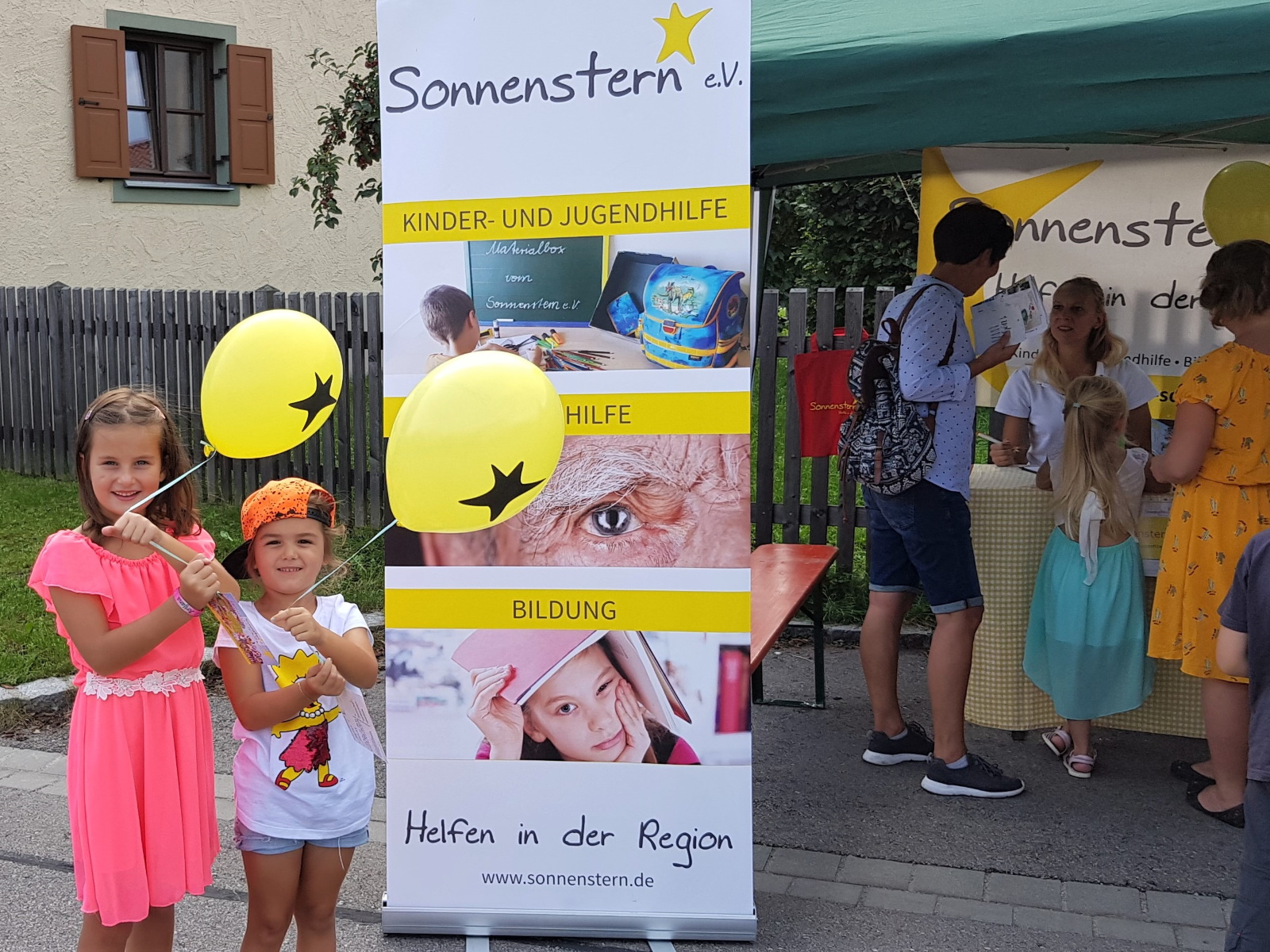 Auch der Sonnenstern hat es sich zur Aufgabe gemacht, sich auf diesen Festen in der Region zu präsentieren. Wir nutzen diese Möglichkeit um uns den Bürgerinnen und Bürger aus der Region vorzustellen, ihnen unsere Arbeit zu präsentieren und das Programm mitzugestalten. Besonders wichtig sind uns bei der Programmmitgestaltung die Kinder, denen bei unserem Stand immer ein spezielles Programm geboten wird. Währenddessen können sich die Eltern mit unserem Team unterhalten und den Verein kennenlernen.