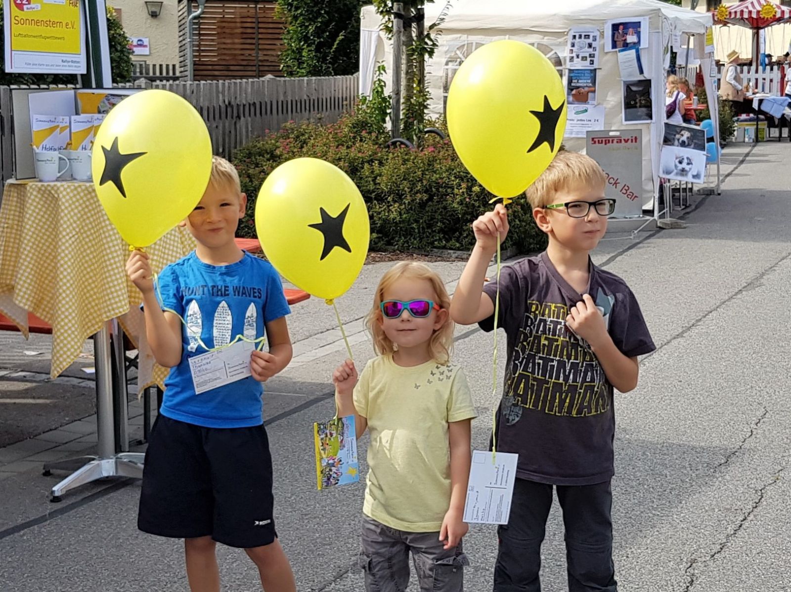 Im Vergleich zum letzten Jahr konnten wir uns am 15.09.2018 auf dem Bürgerfest in Raubling über schönes Wetter freuen. Die Besucherinnen und Besucher konnten sich wie immer über den Infostand freuen, mit dem wir uns vorstellen durften und unsere geleistete Arbeit präsentierten. Des Weiteren gab es natürlich wieder unseren Luftballonweitflugwettbewerb, der dieses Mal neben den Kindern auch die ältere Generation begeisterte. 164 Sonnenstern-Luftballons gingen beim diesjährigen Bürgerfest auf die Reise. Wir warten gespannt auf die Rücksendungen. Die ersten zehn "Gewinner" werden wie immer wieder persönlich von uns benachrichtigt.