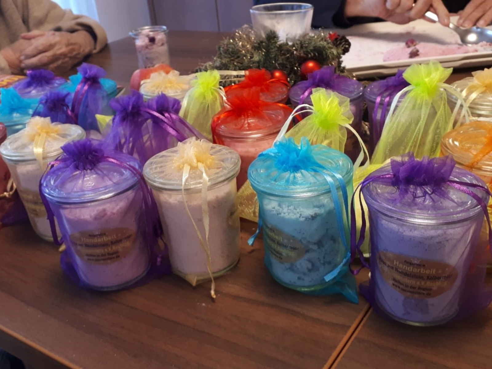 DANKE für's DANKE. Auch 2019 haben es sich die Heimbewohner_innen vom Haus der Pflege und Betreuung am Wendelstein (früher Pro Vita, Kolbermoor) nicht nehmen lassen, etwas für unseren Weihnachtsmarktstand zu basteln. So stellten sie heuer Badebomben- und -zusätze selbst her. Es ist ihnen einfach wichtig, nicht nur zu nehmen, sondern auch selbst zu geben und sich so beim Sonnenstern für die Unterstützung zu bedanken. Danke! Ihr seid spitze!