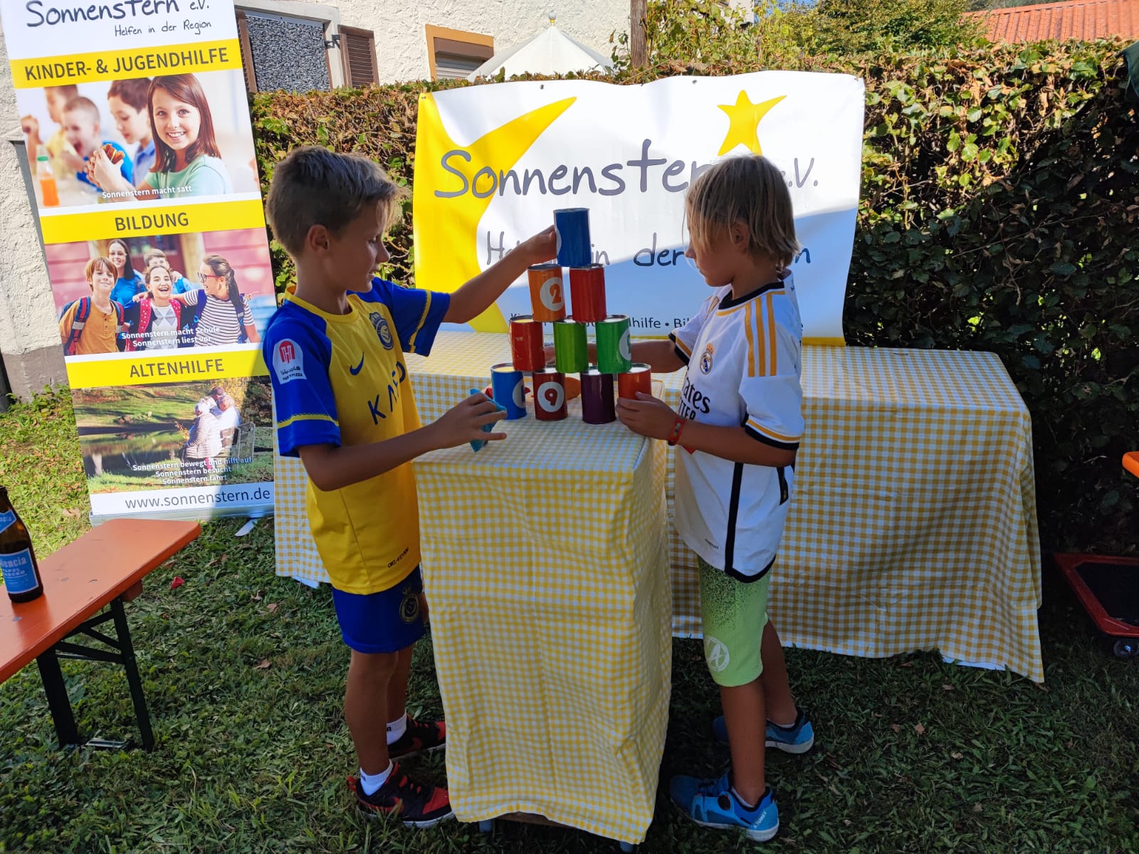 Über 35 Gemeindevereine und -organisationen, so auch der Sonnenstern e.V., beteiligten sich am Fest für die ganze Familie. So gab es am Sonnenstern-Stand Dosenwerfen für alle. Besonders gefreut hat uns dabei, dass unter den Kindern viele kleine Helfer waren, die nicht nur beim Dosenwerfern selbst, sondern auch beim Dosenaufbauen super engagiert waren.