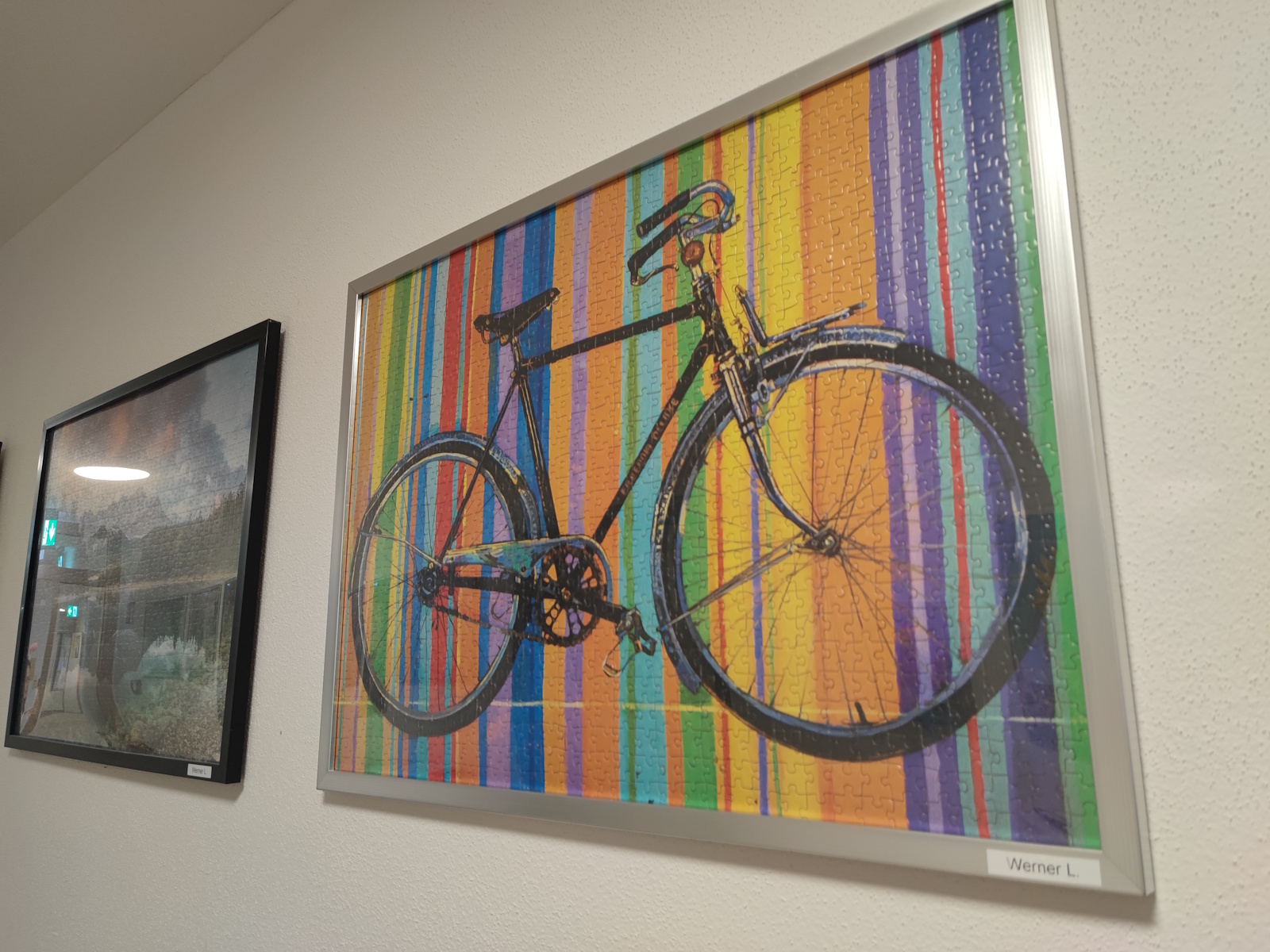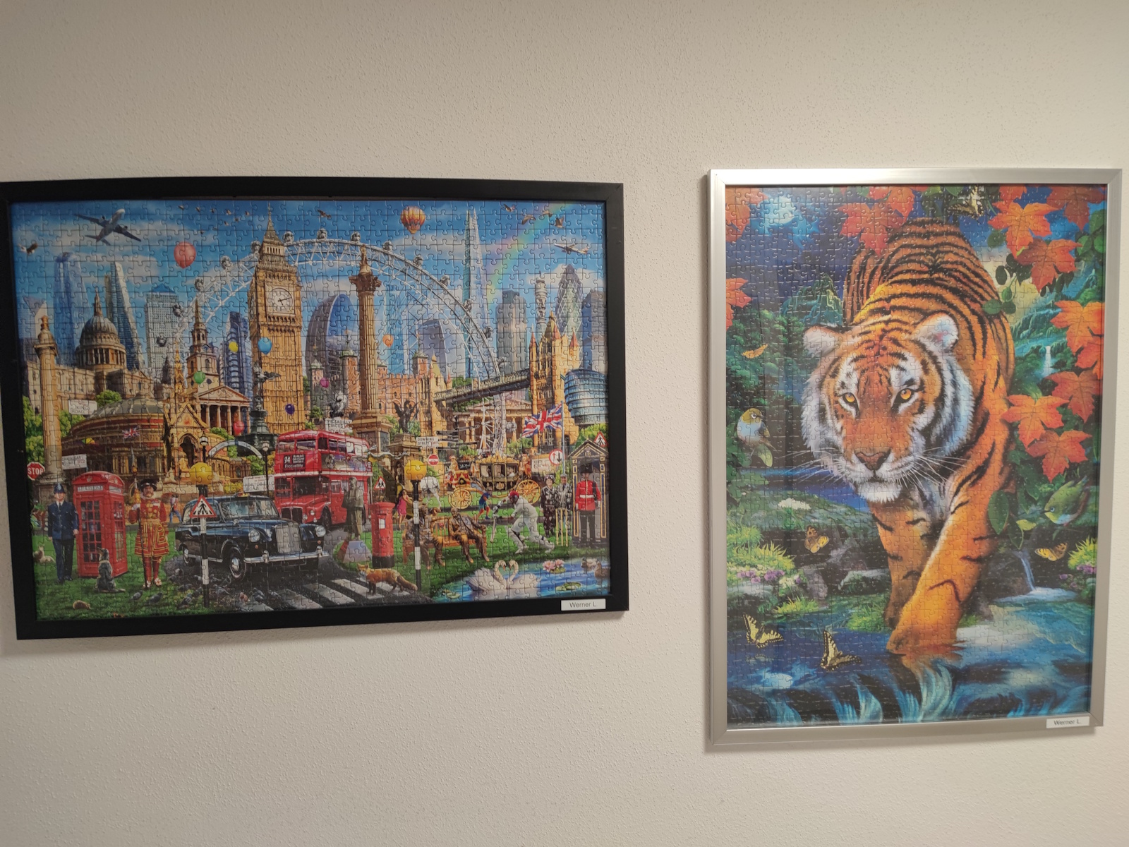 Als wir im Juli 2024 vom Kolbermoorer Altenheim Haus am Wendelstein gefragt wurden, ob wir ihnen ein paar Bilderrahmen spenden könnten, da bei ihnen im Haus viel gepuzzelt wird und sie die fertigen Bilder gerne aufhängen würde, haben wir das natürlich sehr gerne gemacht. Doch dass uns bei unserem diesjährigen Osterbesuch so viele Puzzlebilder in den Gängen begrüßen würden, damit haben wir nicht gerechnet. Vor allem der Werner ist der erklärte Puzzlekönig.